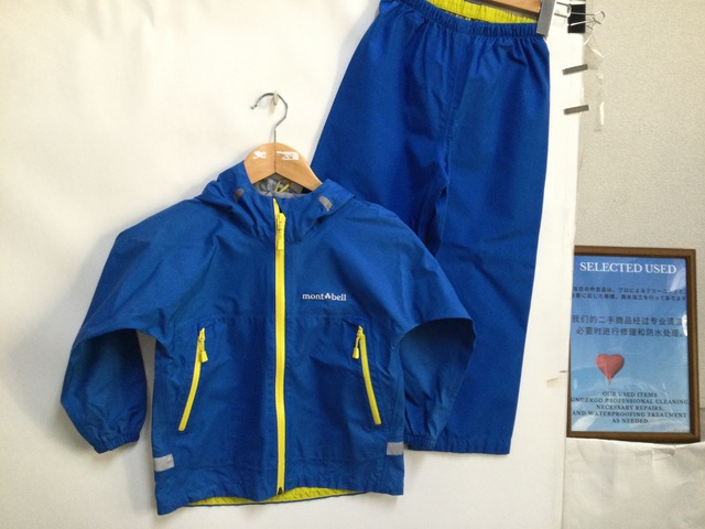 B-0392 140サイズ【mont bell / モンベル】レインウェア上下セット:レイントレッカー キッズ ブルー