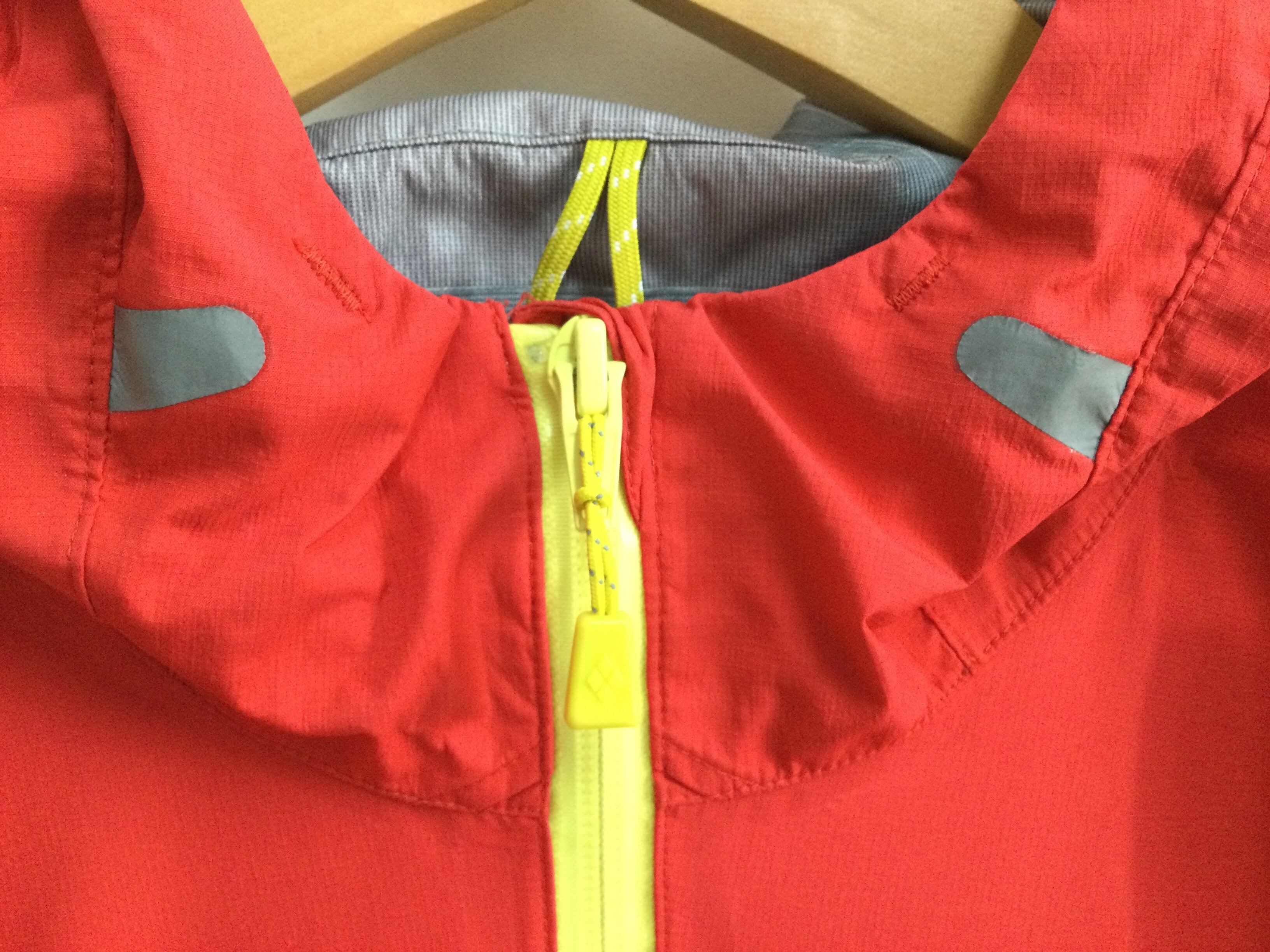 【特徴】車のライトなどを反射して光るロゴ、テープ付き/撥水ジッパー(フロント)/撥水糸/顔の周囲とひさしの上下でフードのフィット感を調節可能/チンガード/細部にまでシームテープ処理/雨風の侵入を防ぐ二枚のフラップ付き/ポケット内のドローコードで裾のフィット感を調節可能