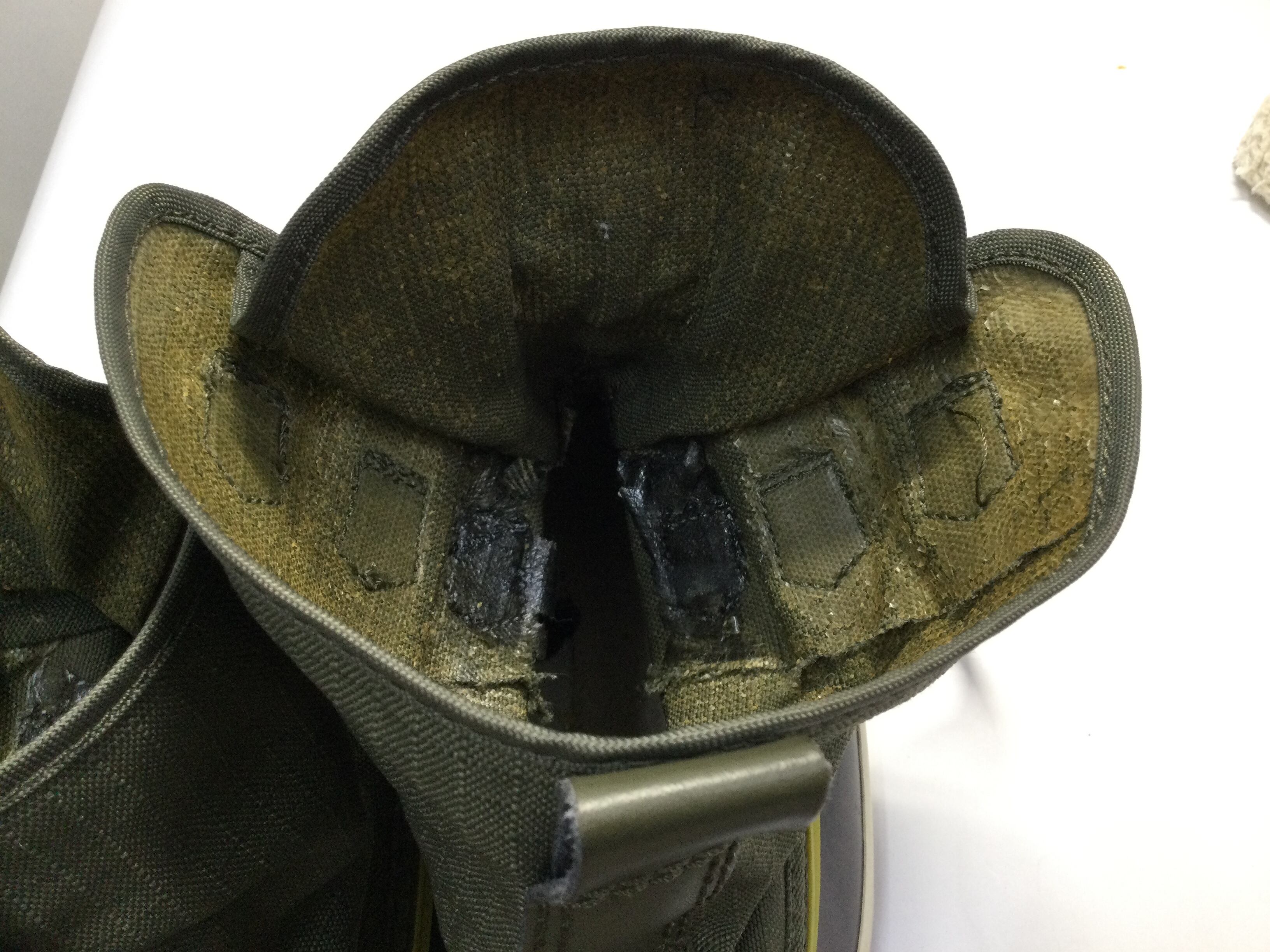 ・ブーツ内側のコーティング剥がれが見られます。(写真12,13,14)