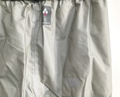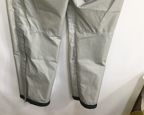 裾が大きく開くボトムジッパー・ロングボトムジッパーを活用することで、ブーツを履いたままでもレインパンツの内側を泥などで汚すことなく、素早く着用することができます。