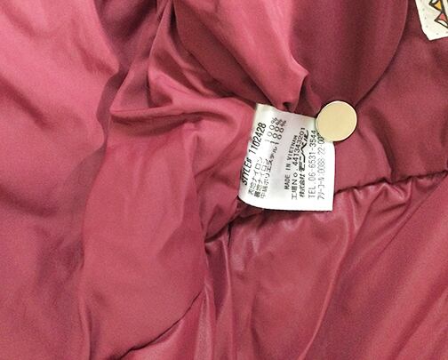 裏地:40デニール・ナイロン・タフタ 中綿:エクセロフトR[ポリエステル]