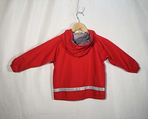 鮮やかな色で雨の日のお出掛けも楽しくなるレインウエアです。高い防水透湿性を備えた生地を使用しているため、裏面の肌離れもよく快適な着心地。子どもでも簡単に着こなせるよう、すみずみまで工夫しています。前面胸部分と背面に反射マークとテープを配し、安全性にも配慮しています。