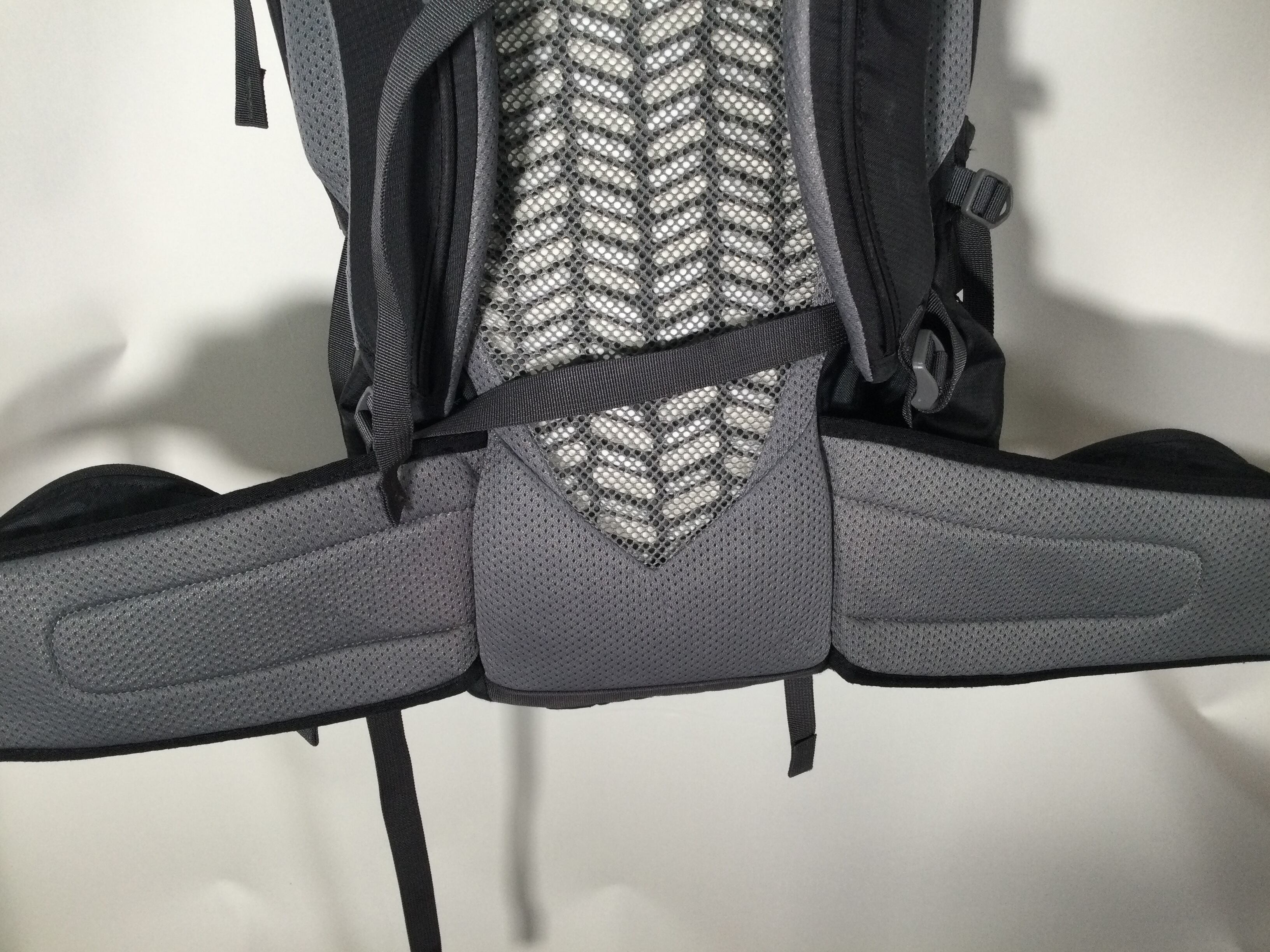 ■アジャスタブル・トレイルフレックス・サスペンション:素早い調整で一人ひとりの背中とヒップベルトの長さにフィットするので、パックは身長と人体構造にマッチし、毎回完璧なフィット感を実現