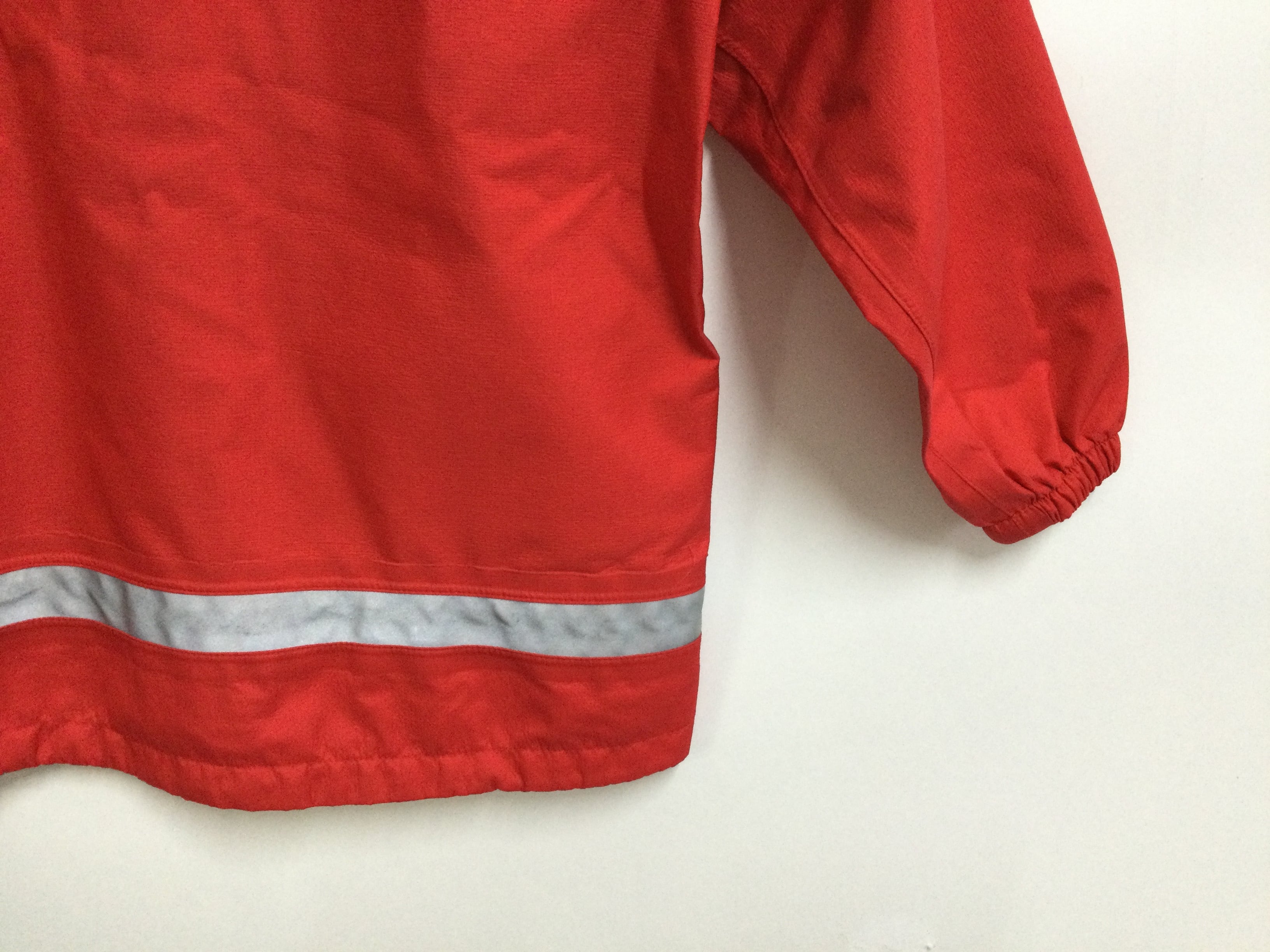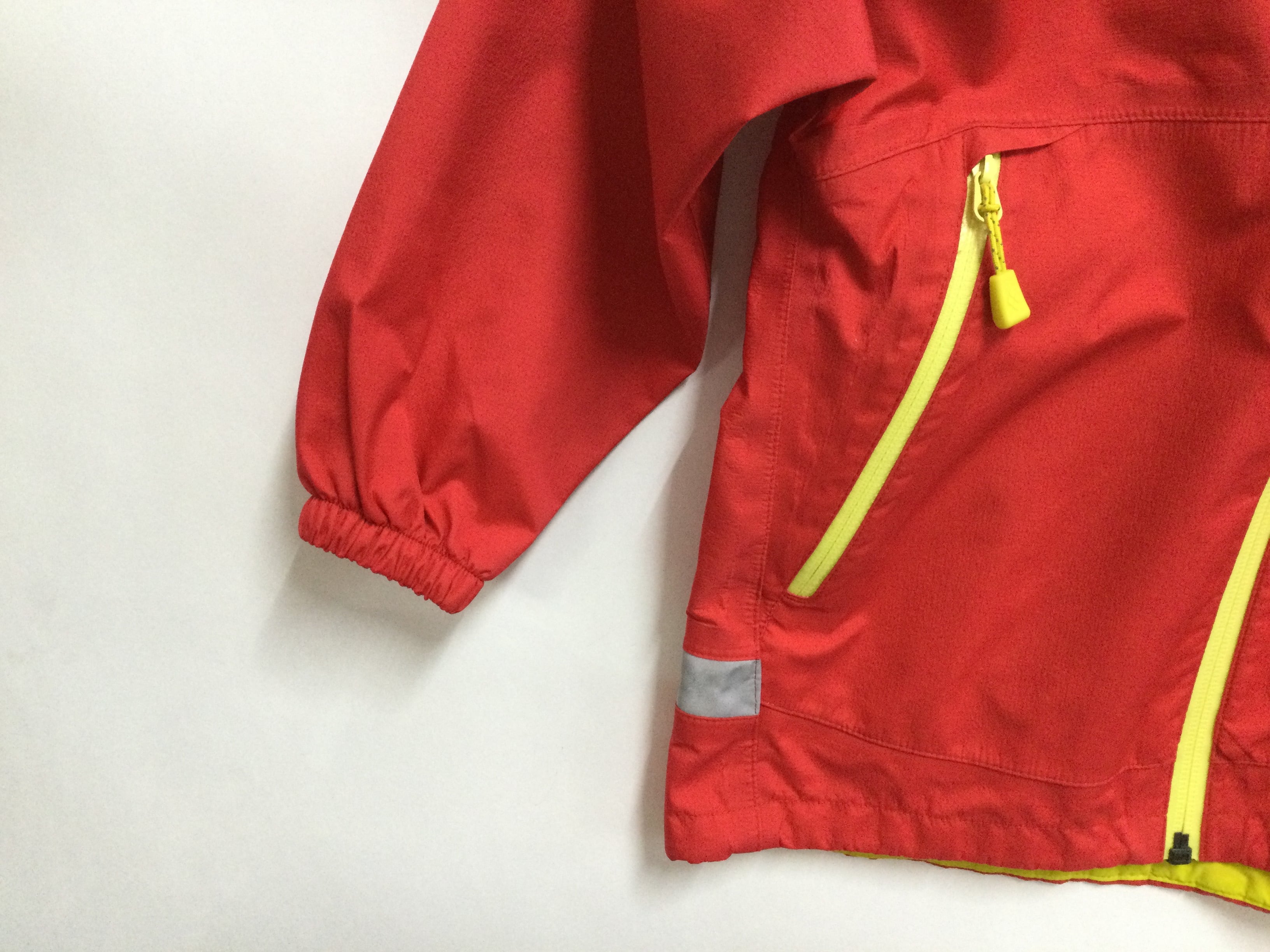 【特徴】車のライトなどを反射して光るロゴ、テープ付き/撥水ジッパー(フロント)/撥水糸/顔の周囲とひさしの上下でフードのフィット感を調節可能/チンガード/細部にまでシームテープ処理/雨風の侵入を防ぐ二枚のフラップ付き/ポケット内のドローコードで裾のフィット感を調節可能