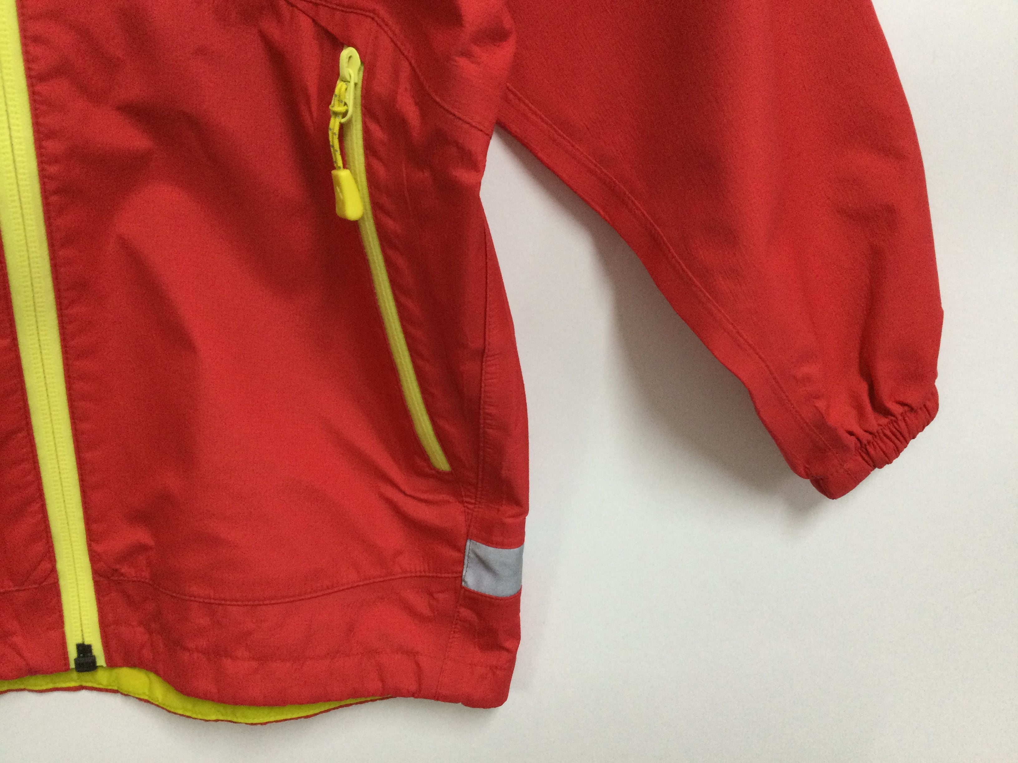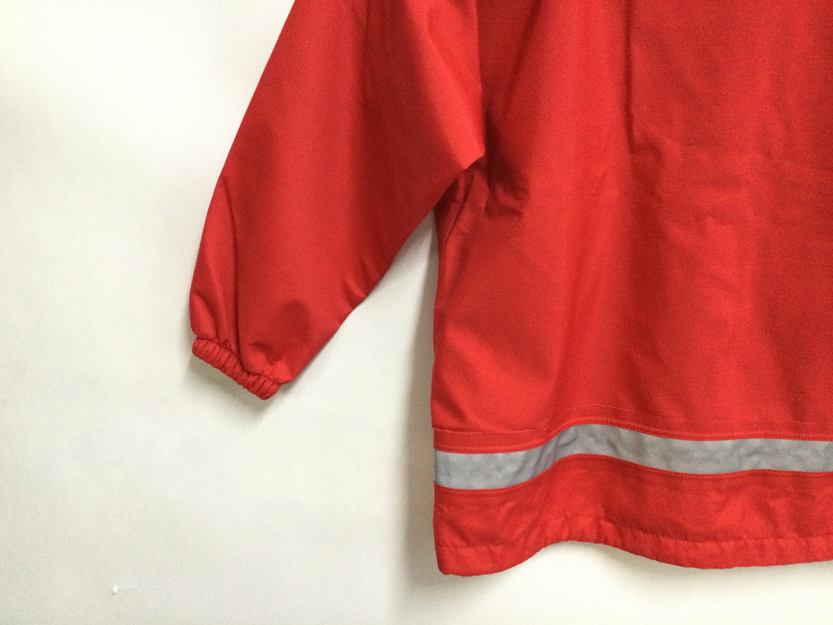 鮮やかな色で雨の日のお出掛けも楽しくなるレインウエアです。高い防水透湿性を備えた生地を使用しているため、裏面の肌離れもよく快適な着心地。子どもでも簡単に着こなせるよう、すみずみまで工夫しています。前面胸部分と背面に反射マークとテープを配し、安全性にも配慮しています。