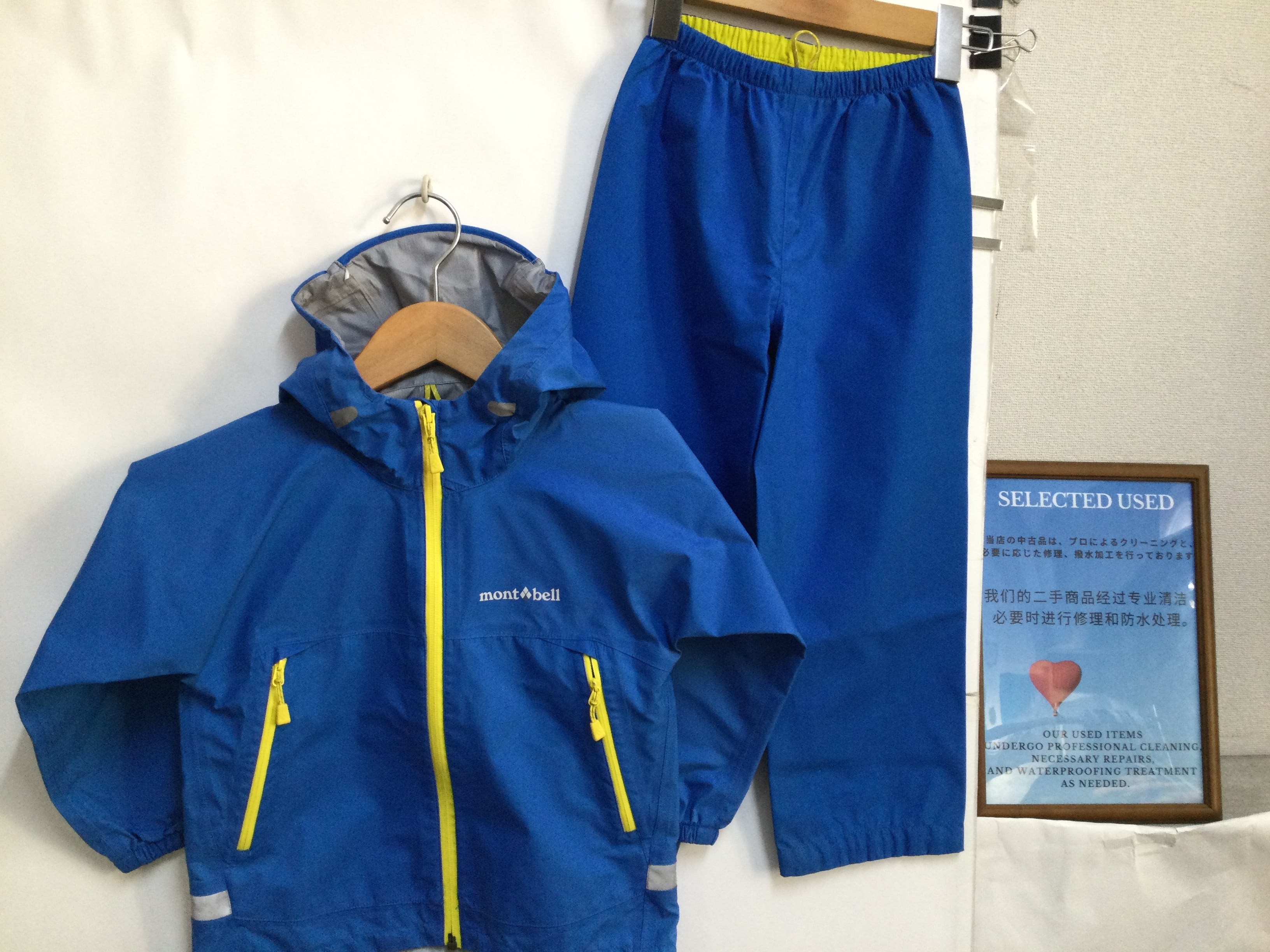B-0488 110サイズ【mont bell / モンベル】レインウェア上下セット:レイントレッカー キッズ ブルー